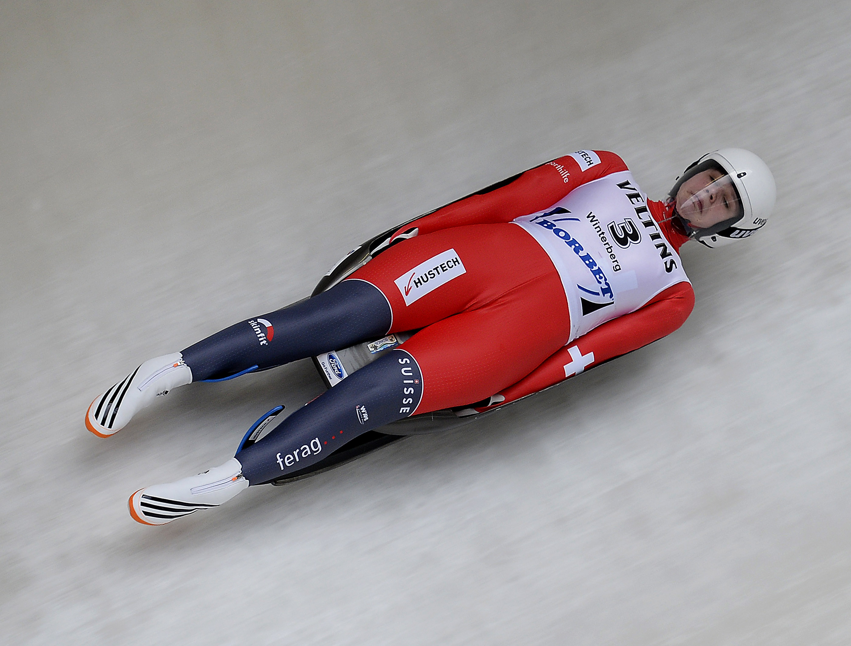 Beim Skeleton, auch Tobboggan genannt, liegt der Athlet auf dem Bauch mit dem Kopf voran auf dem Schlitten. Der Skeletonschlitten wird in der Bahn vor allem durch Gewichtsverlagerungen (über die Schultern) und Korrekturen mit den Füssen gesteuert.